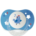 Notre duo de sucettes anatomiques +18 mois aux décors Hippopotame et Coq est fabriquée en Europe (Allemagne), conforme à la norme européenne EN 1400.