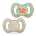 Duo de sucettes anatomiques extra-fines 6-18 mois de haute qualité associant téterelle extra-fine et collerette en plastique d'origine végétale. Sucettes médicalement recommandées par les dentistes et odontopédiatres de l'UFSBD (Union Française pour la Santé Bucco-Dentaire). Décor...