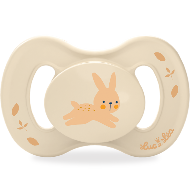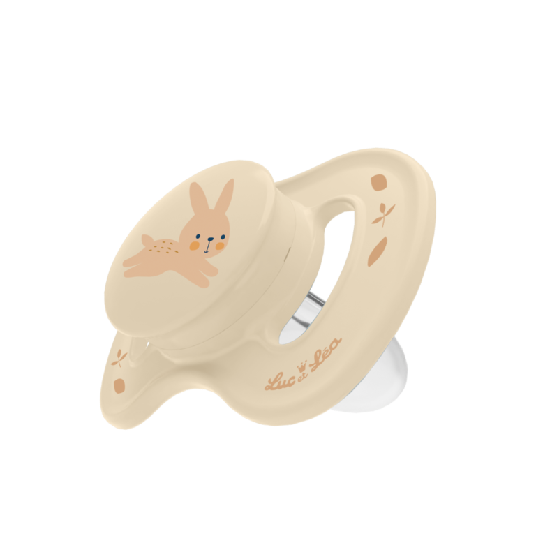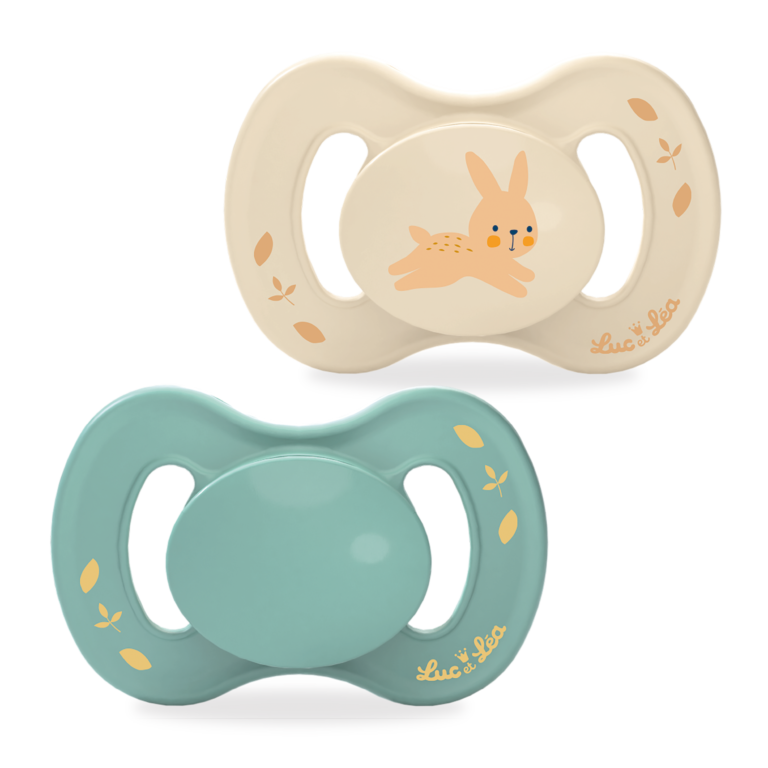 Luc et Léa a fait le choix de proposer des sucettes sans anneaux pour qu’elles soient plus légères dans la bouche de bébé.