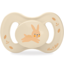 Duo de sucettes anatomiques extra-fine 0-6 mois de haute qualité associant téterelle extra-fine et collerette en plastique d'origine végétale. Sucettes médicalement recommandées par les dentistes et odontopédiatres de l'UFSBD (Union Française pour la Santé Bucco-Dentaire). Décor Lapin.
