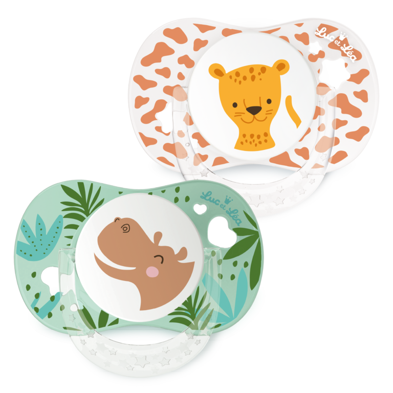 Expert de la petite puériculture depuis 1986, la marque Luc et Léa garantit une sécurité et un confort maximal aux bébés. Nos sucettes sont l’allié réconfort de bébé, elles satisfont son besoin naturel et inné de succion. Nos sucettes anatomiques sont strictement conformes aux normes de sécurité en vigueur. Nos sucettes 6-18 mois sont de très haute qualité et garanties sans BPA, ni BPS. Ces sucettes 6-18 mois disposent d’une téterelle anatomique en silicone qui s’adapte parfaitement au palais et respecte le développement harmonieux des gencives et des dents. Décors Léopard et Hippopotame.