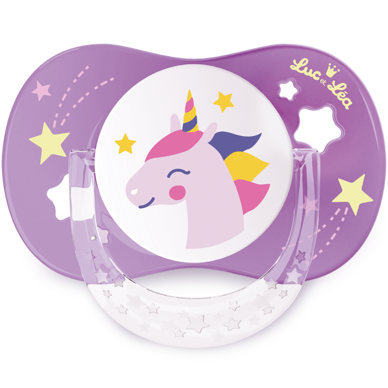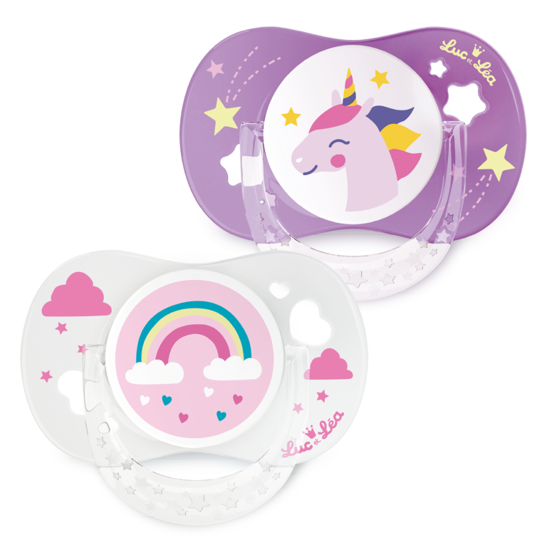 Expert de la petite puériculture depuis 1986, la marque Luc et Léa garantit une sécurité et un confort maximal aux bébés. Nos sucettes sont l’allié réconfort de bébé, elles satisfont son besoin naturel et inné de succion. Nos sucettes anatomiques sont strictement conformes aux normes de sécurité en vigueur. Nos sucettes +18 mois sont de très haute qualité et garanties sans BPA, ni BPS. Ces sucettes +18 mois disposent d’une téterelle anatomique en silicone qui s’adapte parfaitement au palais et respecte le développement harmonieux des gencives et des dents. Décors Licorne et Arc en ciel.