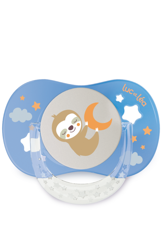 Les sucettes nuit « Etoile », « Ours », « Mille et une nuits » et « Fée » Luc et Léa possèdent un bouton phosphorescent pour que bébé et ses parents retrouvent plus facilement la sucette dans la nuit. Pour qu’elles scintillent dans la nuit, ces sucettes doivent être « rechargées » à la lumière (sous une lampe ou à la lumière du jour).