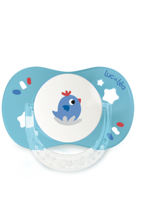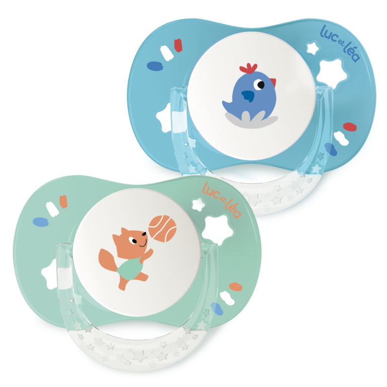 Luc et Léa a fait le choix de proposer des sucettes sans anneaux pour qu’elles soient plus légères dans la bouche de bébé.