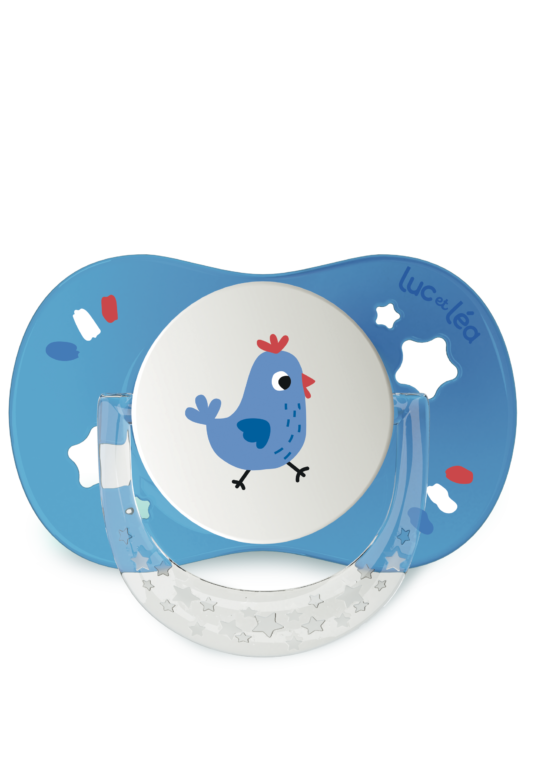 Luc et Léa a fait le choix de proposer des sucettes sans anneaux pour qu’elles soient plus légères dans la bouche de bébé.