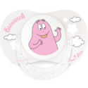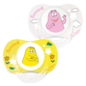 Duo de sucettes physiologiques 6-18 mois avec anneau associant téterelle physiologique et collerette Confort+ anti-rougeurs et irritations. Décors Barbidou et Barbapapa.