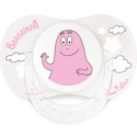 Sucette physiologique 18 mois+ avec anneau associant téterelle physiologique et collerette Confort+ anti-rougeurs et irritations. Décor Barbotine et Barbapapa.