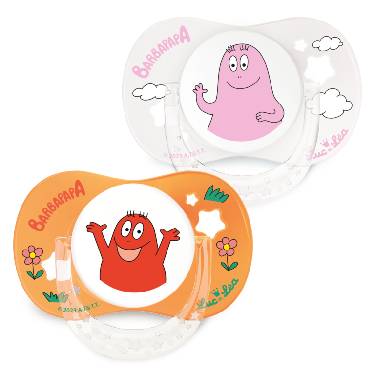 Retombez en enfance avec les sucettes physiologiques de l’édition limitée Barbapapa ! Expert de la petite puériculture depuis 1986, la marque Luc et Léa garantit une sécurité et un confort maximal aux bébés. Nos sucettes sont l’allié réconfort de bébé, elles satisfont son besoin naturel et inné de succion. Nos sucettes physiologiques sont strictement conformes aux normes de sécurité en vigueur. Nos sucettes 18 mois+ sont de très haute qualité et garanties sans BPA, ni BPS. Ces sucettes 18 mois+ disposent d’une téterelle physiologique en silicone qui s’adapte parfaitement au palais et respecte le développement harmonieux des gencives et des dents. Grâce aux décors de l’édition limitée Barbapapa, découvrez des duos colorés, funs et mixtes. Décors Barbotine et Barbapapa.