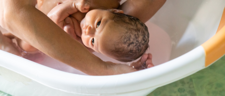 Cadeau de naissance idéal contenant un assortiment de 5 produits pour le bain, la toilette, le change et le soin, nécessaires à l'arrivée à de bébé.