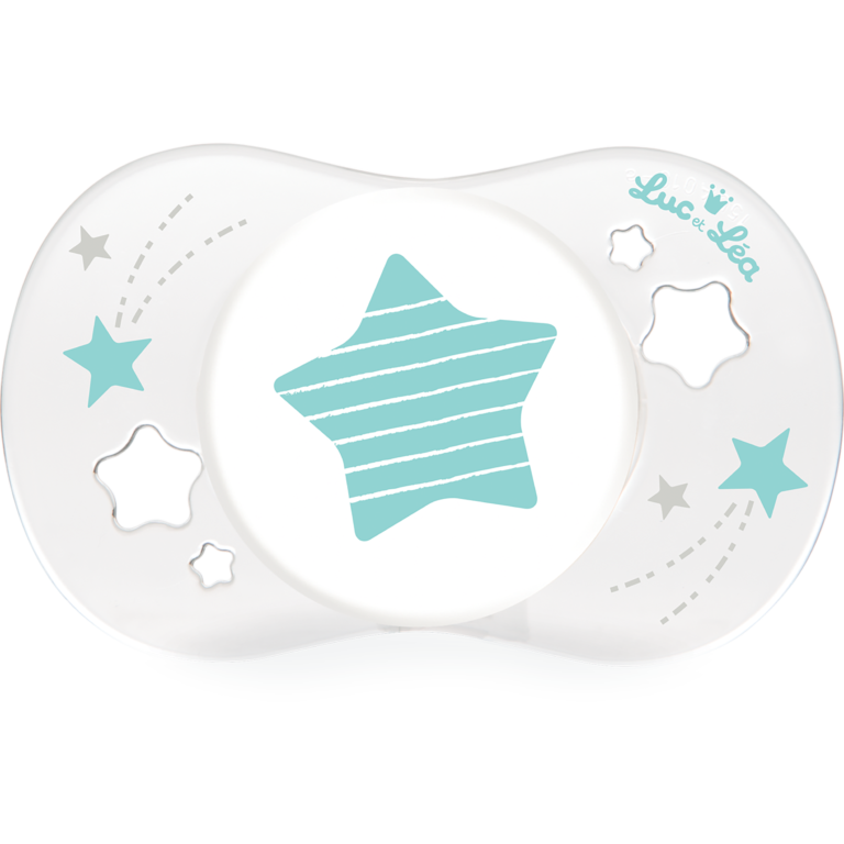 Les sucettes nuit « Etoile », « Ours », « Mille et une nuits » et « Fée » Luc et Léa possèdent un bouton phosphorescent pour que bébé et ses parents retrouvent plus facilement la sucette dans la nuit. Pour qu’elles scintillent dans la nuit, ces sucettes doivent être « rechargées » à la lumière (sous une lampe ou à la lumière du jour).