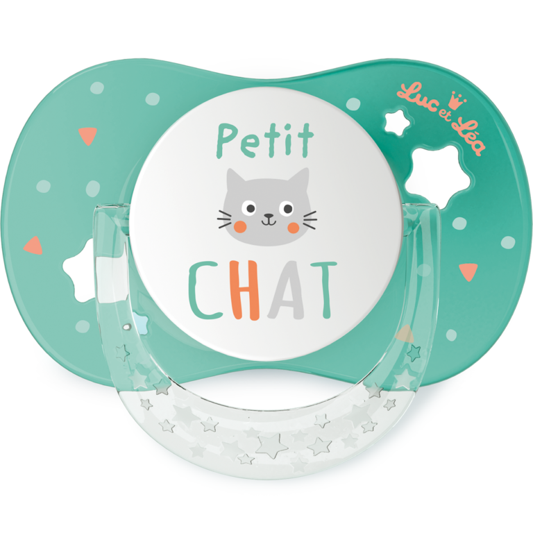 Expert de la petite puériculture depuis 1986, la marque Luc et Léa garantit une sécurité et un confort maximal aux bébés. Nos sucettes sont l’allié réconfort de bébé, elles satisfont son besoin naturel et inné de succion. Nos sucettes anatomiques sont strictement conformes aux normes de sécurité en vigueur. Nos sucettes +18 mois sont de très haute qualité et garanties sans BPA, ni BPS. Ces sucettes +18 mois disposent d’une téterelle anatomique en silicone qui s’adapte parfaitement au palais et respecte le développement harmonieux des gencives et des dents. Décor Petit chat.